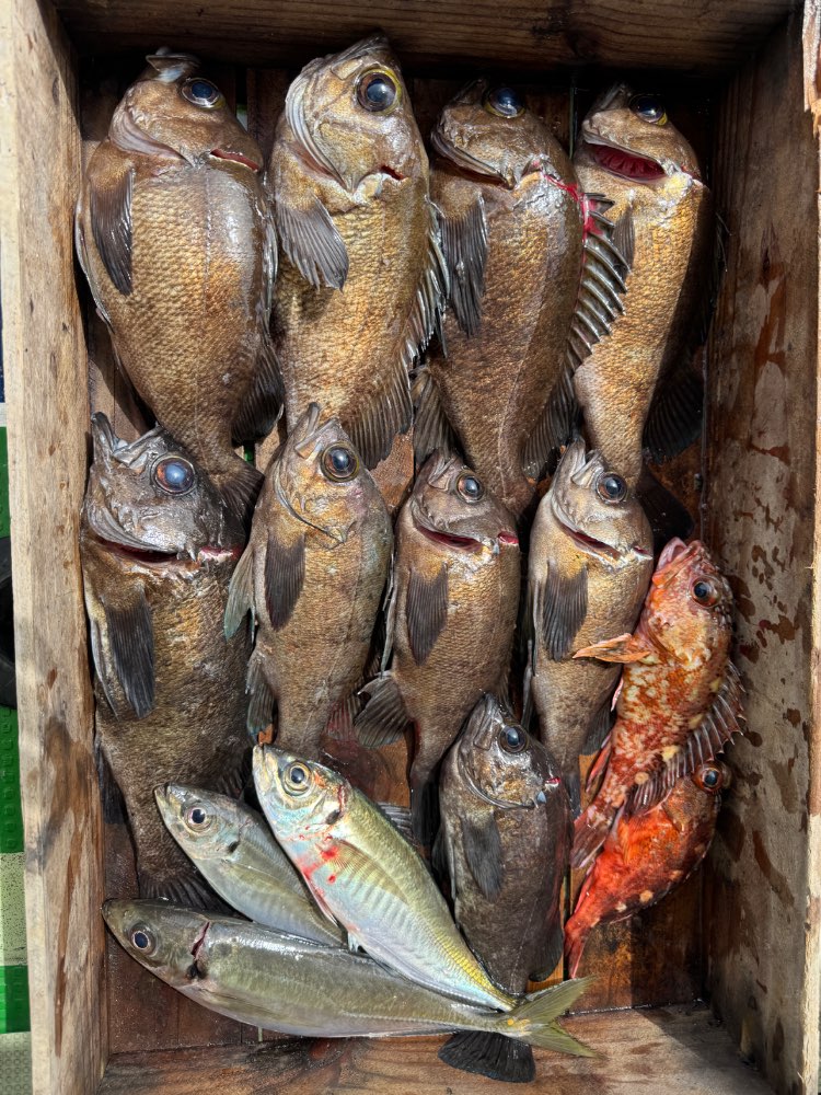 釣果情報 2026.04.06 メバル・ガシラ 良型多数! ツヌケまで後1匹🔥 船全体的にもポツポツ釣れて、30cm前後の大型が多かったです。🤩 スペシャルゲストのでっかいアコウも! 初挑戦の皆様も黒ダイヤ💎ゲットでした😊 トップ9匹 他に、アコウ、アジ、ガシラ 次の釣果 前の釣果
